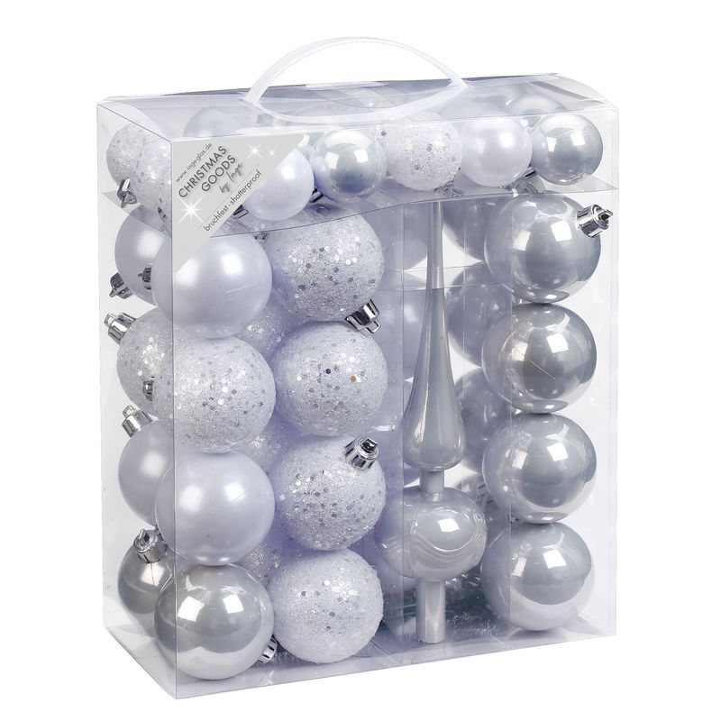 Inges – Palline di Natale ARGENTO con Puntale 47pz 4 e 6 cm