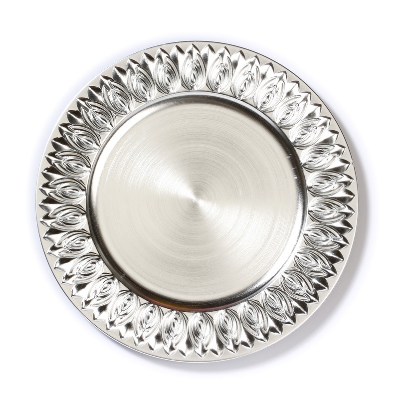 Inges – Sottopiatto decorato color argento 36 cm – Una proposta unica e curata nei dettagli, pensata per sorprendere e valorizzare ogni occasione speciale con stile ed emozione.