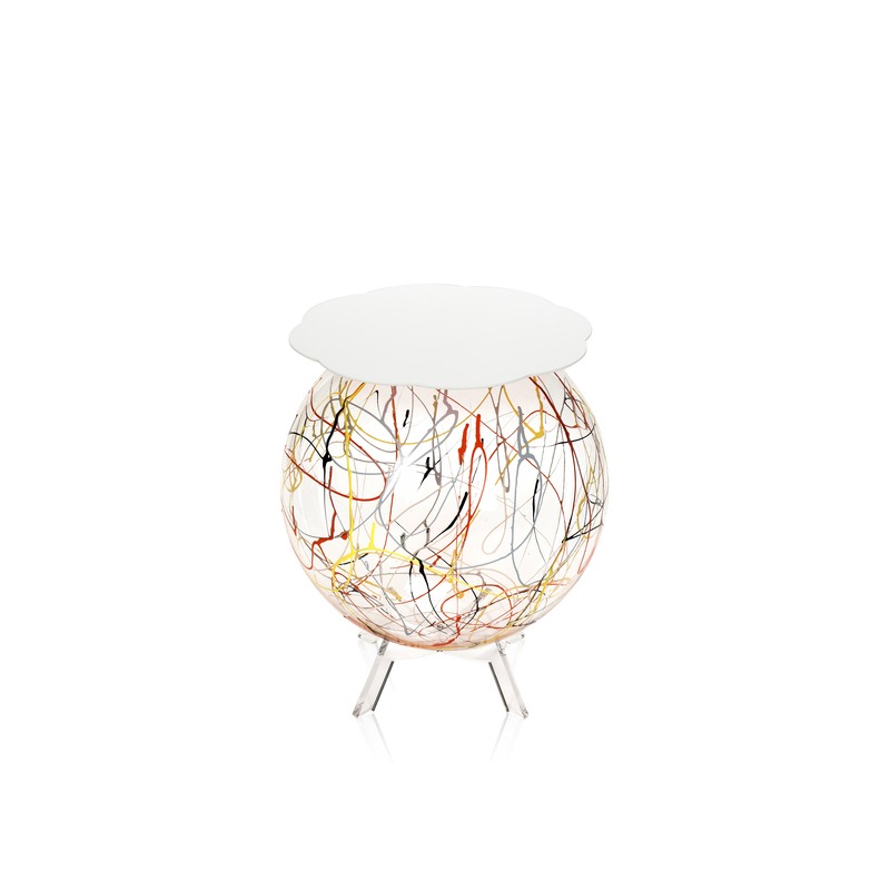 iPLEX – Boollino Tavolino in plexiglass struttura sferica 40x40x46 cm con ripiano bianco, schizzo artistico colorato – vaso per fiori acquario contenitore portaoggetti portabiancheria – Una proposta unica e curata nei dettagli, pensata per sorprendere e valorizzare ogni occasione speciale con stile ed emozione.