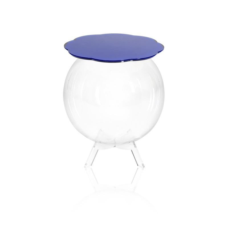 iPLEX – Boollino Tavolino in plexiglass trasparente struttura sferica 40x40x46 cm con ripiano blu, uso vaso acquario contenitore – Una proposta unica e curata nei dettagli, pensata per sorprendere e valorizzare ogni occasione speciale con stile ed emozione.