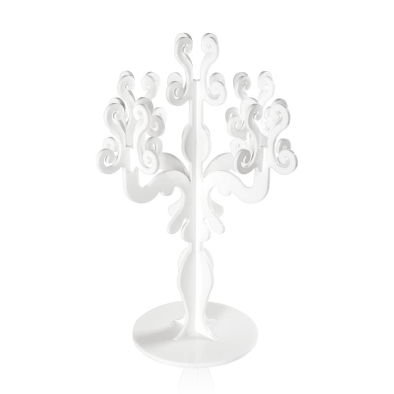 Elegante candelabro dal sapore rinascimentale adattato al nostro tempo: 5 braccia in plexiglass PMMA trasparente, con sagomature tagliate al laser che richiamano i pregiati ornamenti dei candelieri rinascimentali in cristallo di rocca. Le caratteristiche fisico-tecniche del plexiglass (antiurto, indeformabile, inalterabile, termoisolante) rendono il candelabro adatto sia in casa che outdoor. La luminosità e la brillantezza si mantengono costanti ed inalterati nel tempo. Il plexiglass PMMA da polimero vergine utilizzato da Iplex Design è atossico, ipoallergico, inodore ed antibatterico. Riciclabile 100%. Design: Iplex Team. Pensato, progettato e realizzato in Italia, con materiali italiani.