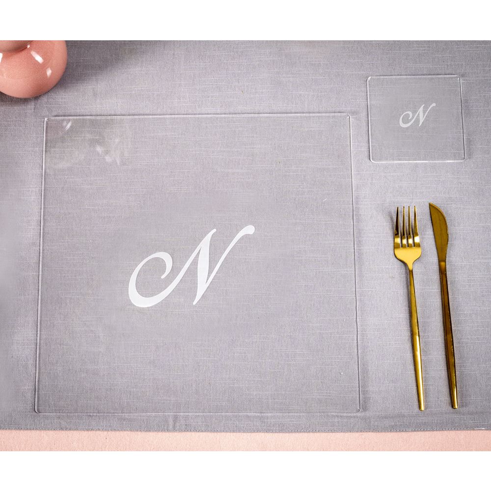 iPLEX Design – Bon Ton Set Sottobicchiere / Sottopiatto Quadrato “N” Trasp. in plexiglass 33x33x0,6h cm – Una proposta unica e curata nei dettagli, pensata per sorprendere e valorizzare ogni occasione speciale con stile ed emozione.