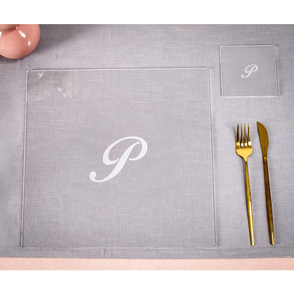 iPLEX Design – Bon Ton Set Sottobicchiere / Sottopiatto Quadrato “P” Trasp. in plexiglass 33x33x0,6h cm – Una proposta unica e curata nei dettagli, pensata per sorprendere e valorizzare ogni occasione speciale con stile ed emozione.