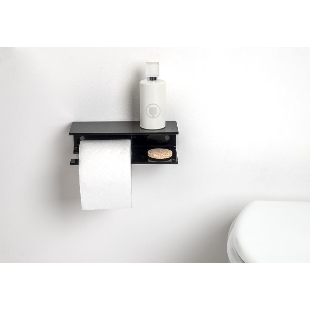 iPLEX Design – Calipso Portarotolo Nero in plexiglass 23x10x7h cm