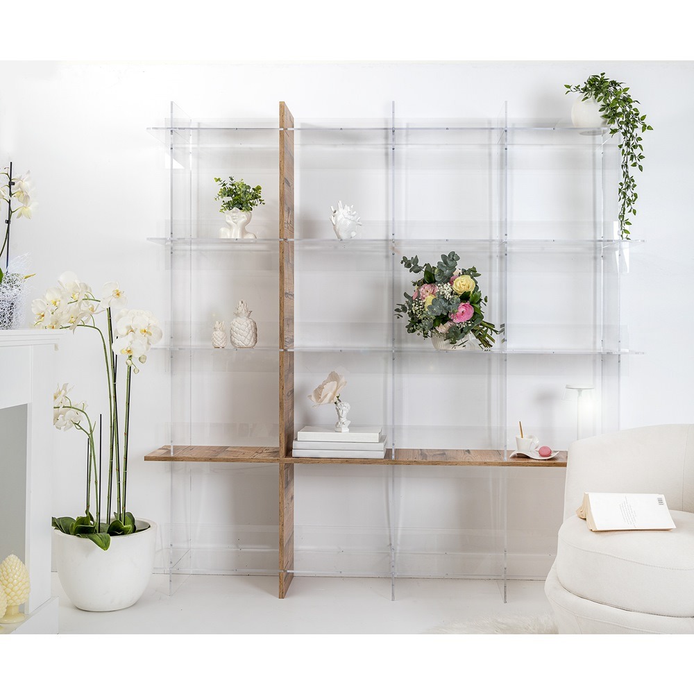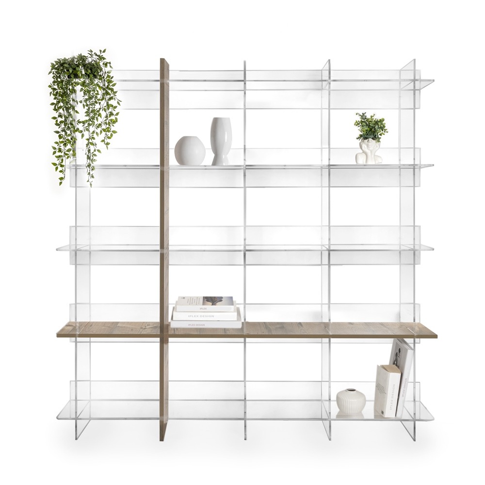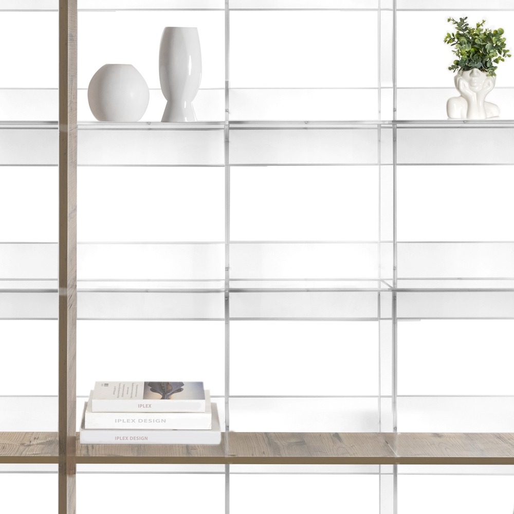 iPLEX Design – Cielo Libreria Rovere in plexiglass/legno 180×30,5x180h cm