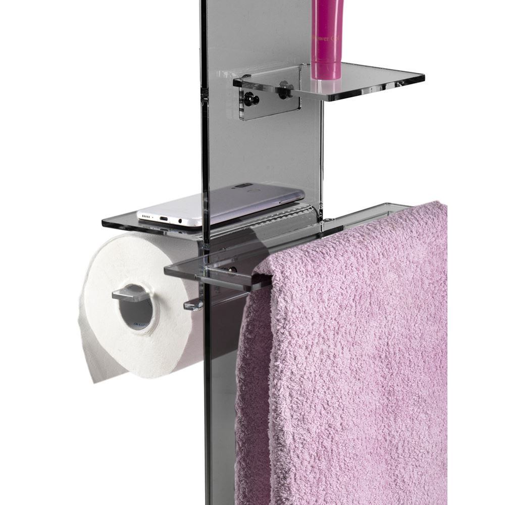 iPLEX Design – Clio Colonnina Bagno (Portacarta Ascugamano E Sapone Da Bidet) Fume’ in plexiglass 31x23x87h cm
