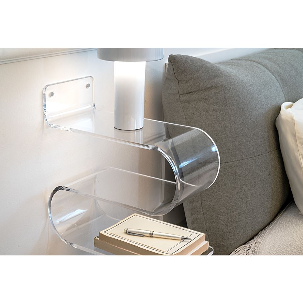 iPLEX Design – Curvy Ionica Mensola – Comodino in plexiglass 33x15x34h cm – Una proposta unica e curata nei dettagli, pensata per sorprendere e valorizzare ogni occasione speciale con stile ed emozione.