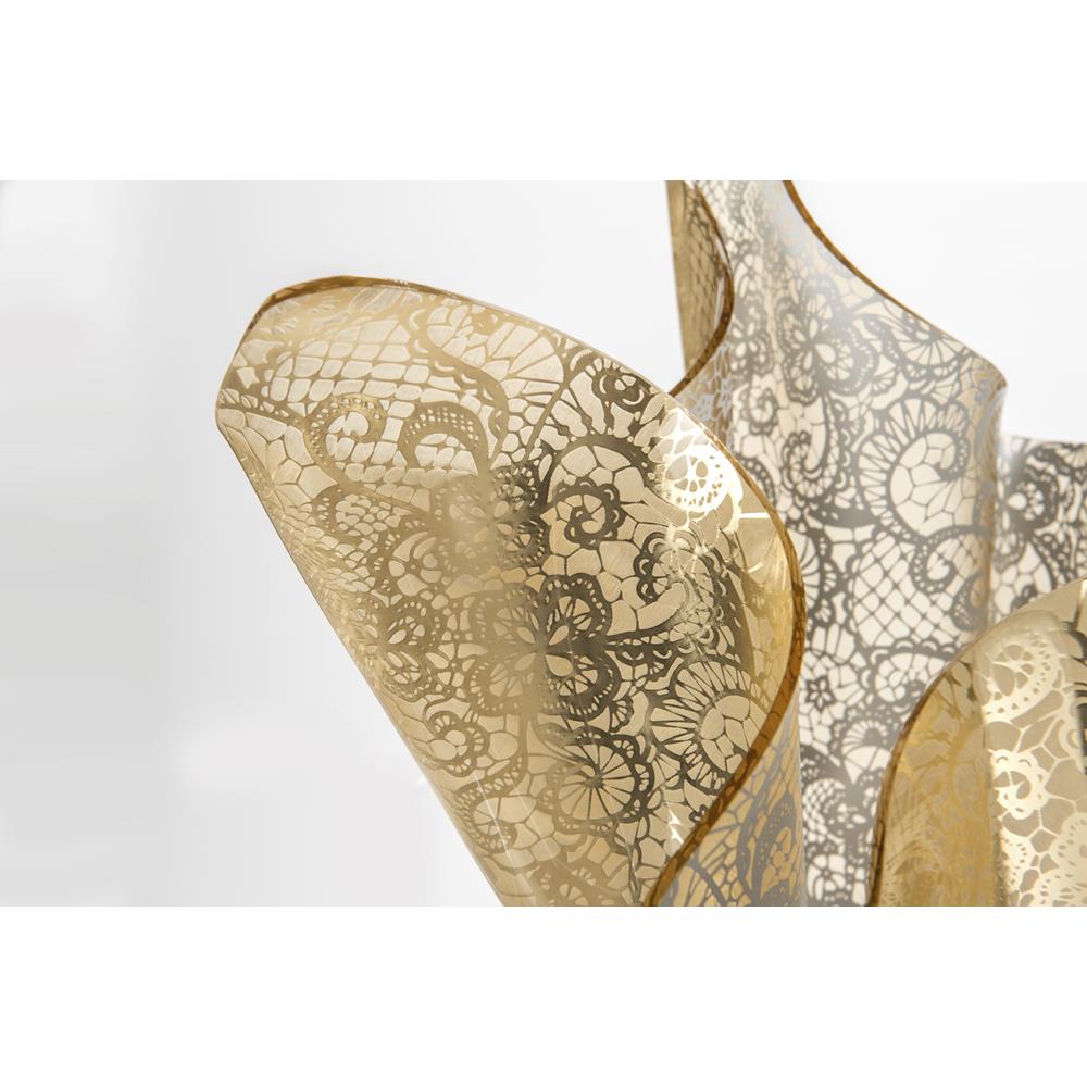 iPLEX Design – Drappeggi Pizzo Leavers Gold Vaso in plexiglass 45x45x29 cm