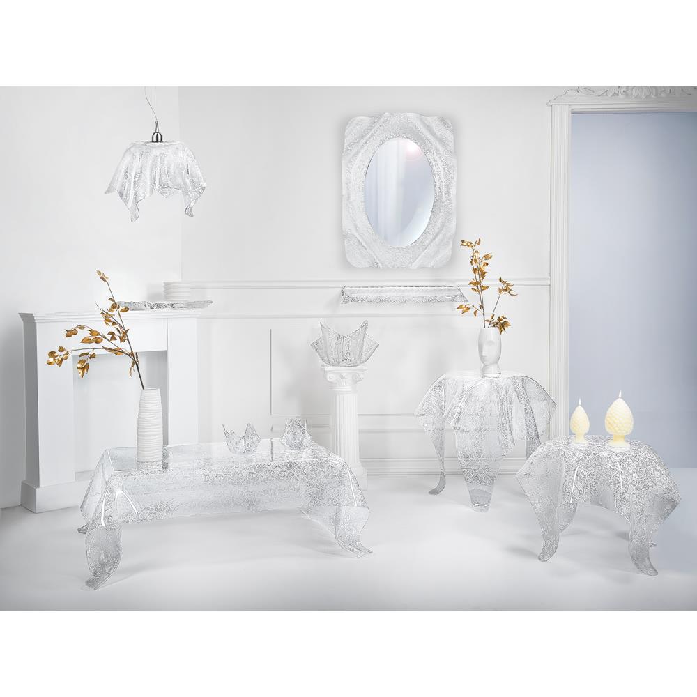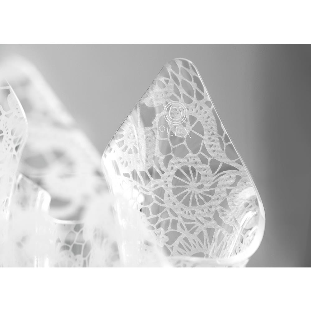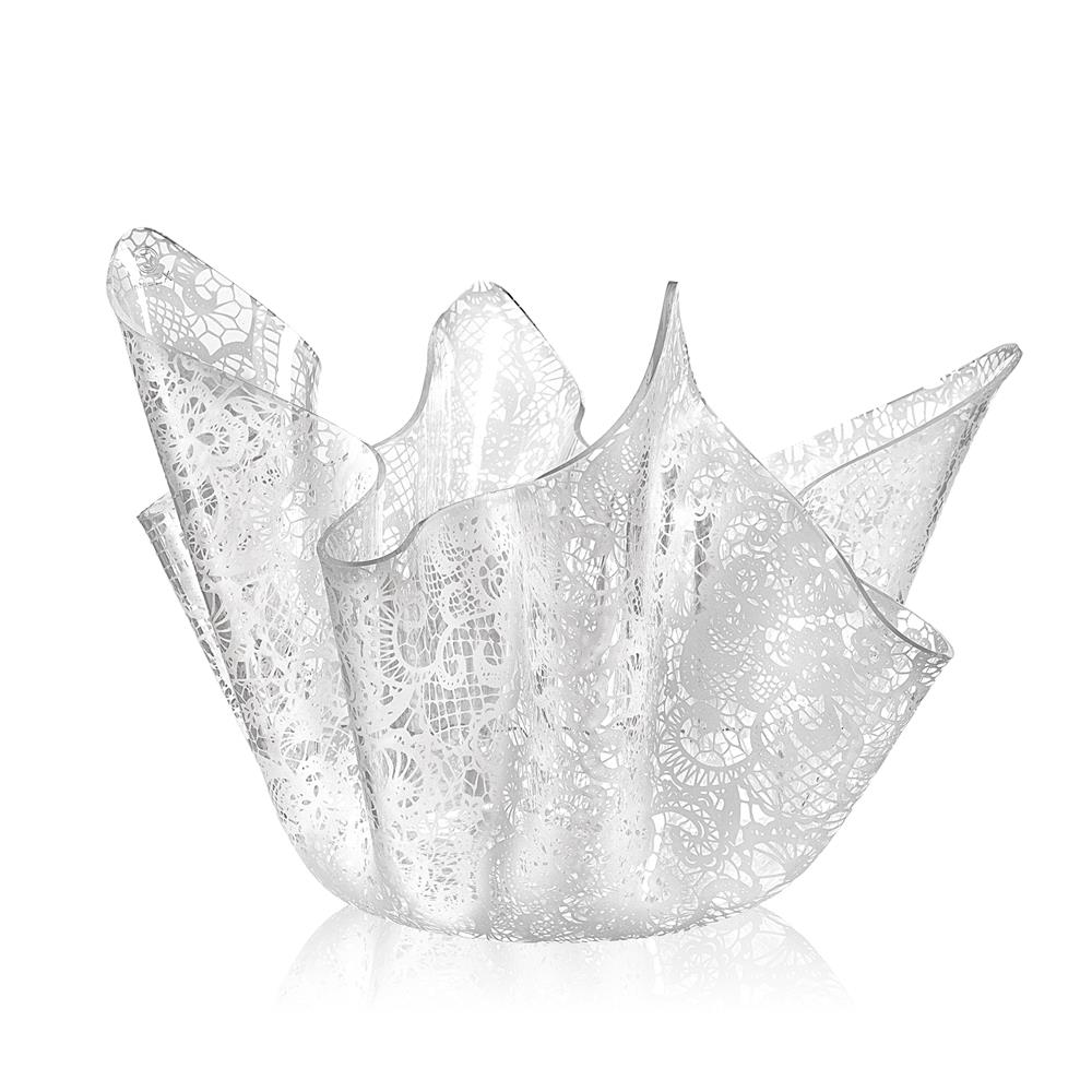 iPLEX Design – Drappeggi Vaso Trasparente con decorazione Pizzo Leavers in plexiglass 45x45x29 cm