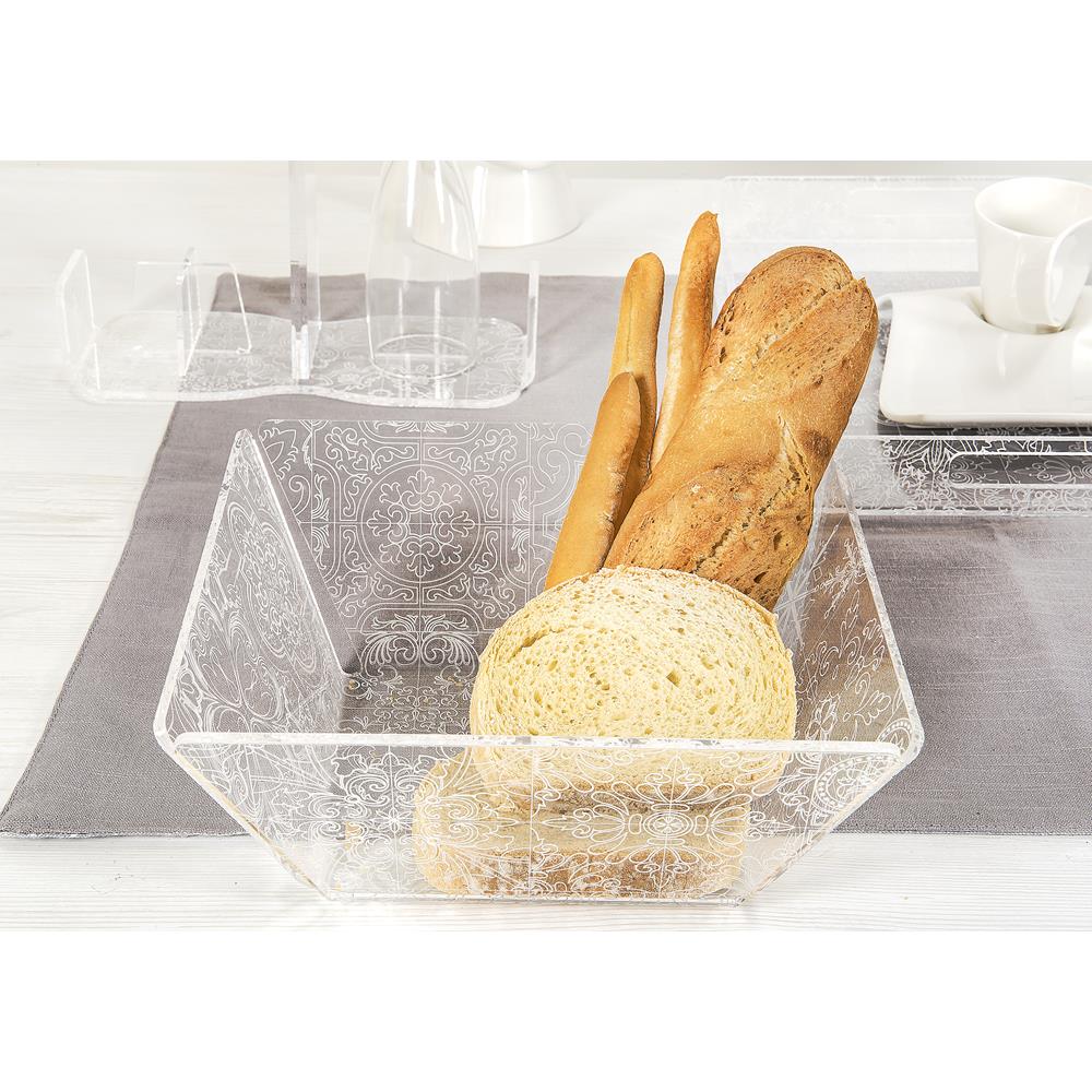 iPLEX Design – Etiquette Cestino Portapane Maiolica Trasparente – Bianco in plexiglass 22x22x8,6 cm