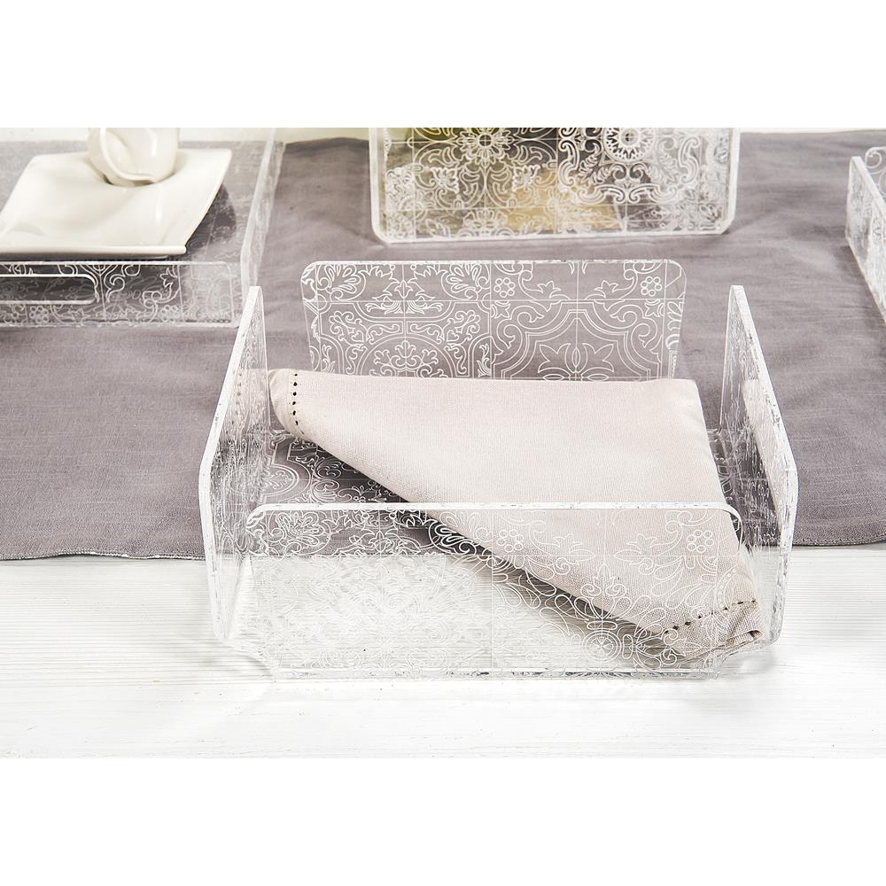 iPLEX Design – Etiquette Porta Tovaglioli Orizzontale Maiolica Trasparente – Bianco in plexiglass 22x22x7,5 cm