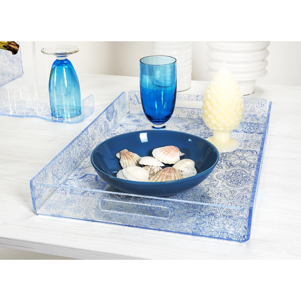 iPLEX Design – Etiquette Vassoio Grande Trasparente – Azzurro Maiolica Azulejos in plexiglass 45,5x32x5 cm – Una proposta unica e curata nei dettagli, pensata per sorprendere e valorizzare ogni occasione speciale con stile ed emozione.