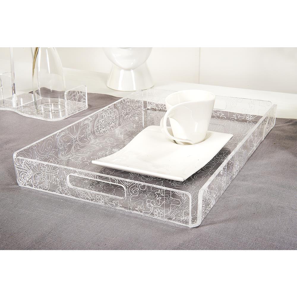 iPLEX Design – Etiquette Vassoio Piccolo Trasparente – Bianco in plexiglass 33x23x4 cm