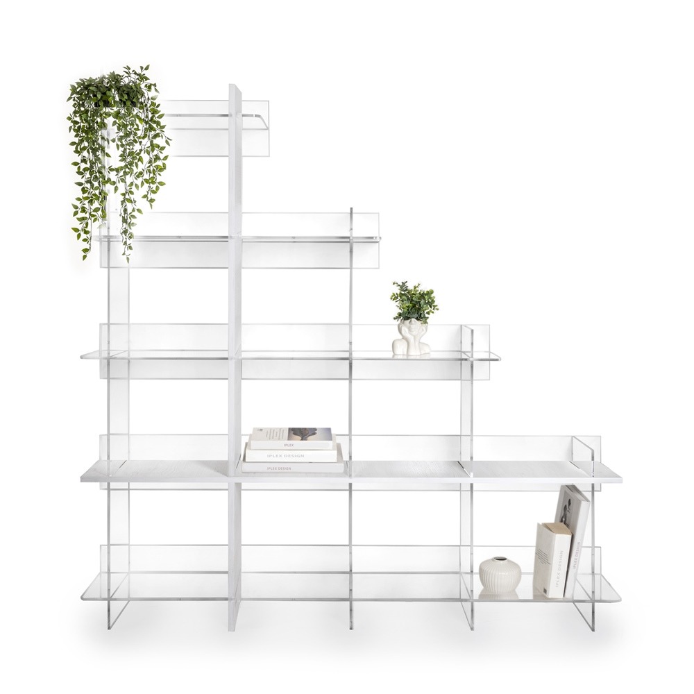 iPLEX Design – Etra Libreria Bianco in plexiglass/legno 180×30,5x180h cm