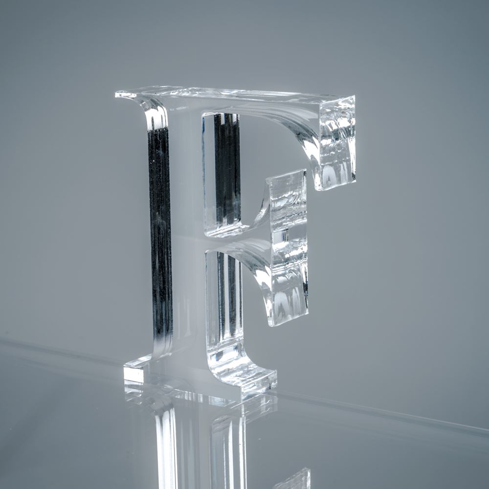 iPLEX Design – Font Lettera “F” Trasparente in plexiglass 12x3x15h cm