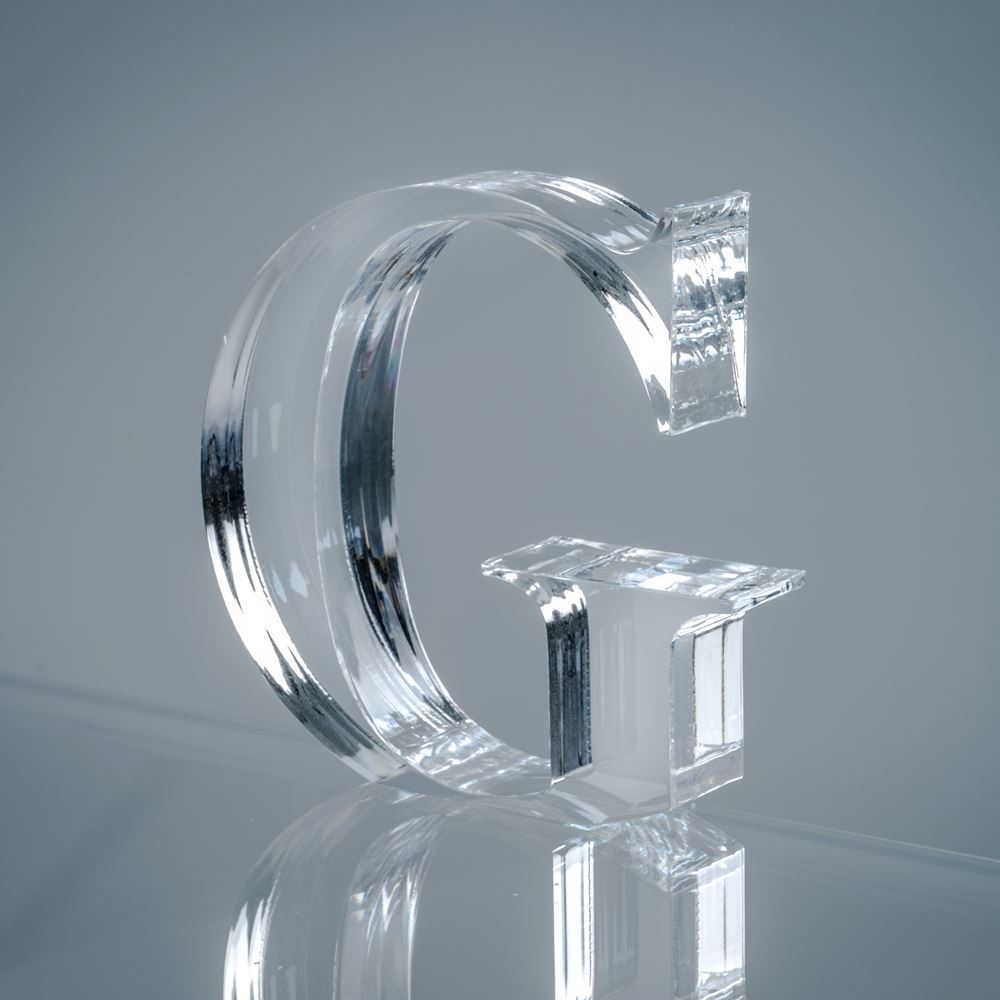 iPLEX Design – Font Lettera “G” Trasparente in plexiglass 16x3x15h cm