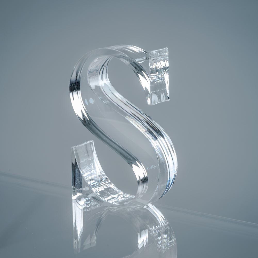 iPLEX Design – Font Lettera “S” Trasparente in plexiglass 10x3x15h cm