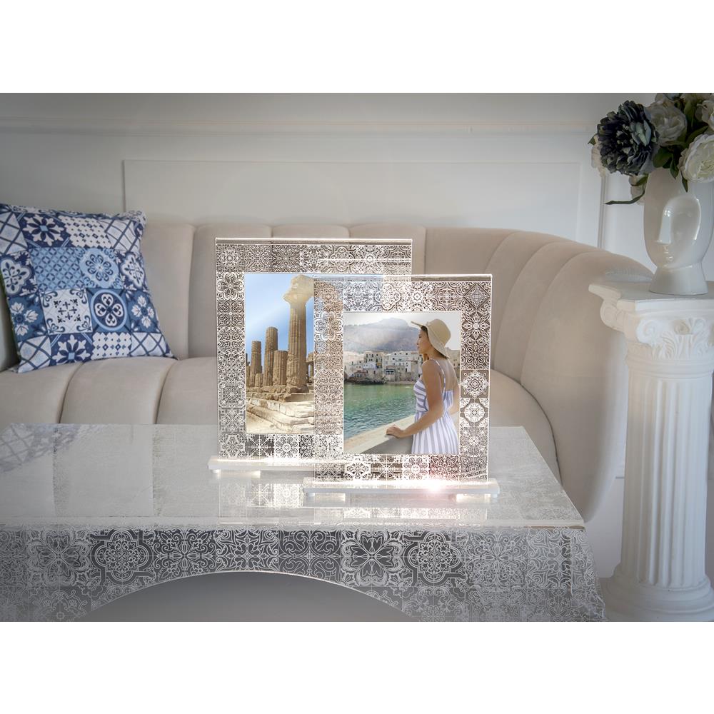 iPLEX Design – Hyde Portafoto Doppio Trasparente Luminoso con decorazioni maioliche 13 X 18 in plexiglass 24x5x30,5 cm