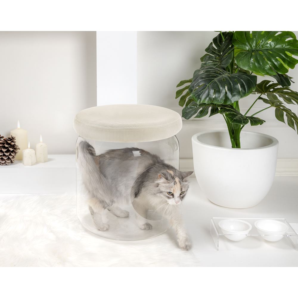 iPLEX Design – I-Pet Cuccia Sit Beige in plexiglass/ tessuto 40x40x46h cm – Una proposta unica e curata nei dettagli, pensata per sorprendere e valorizzare ogni occasione speciale con stile ed emozione.