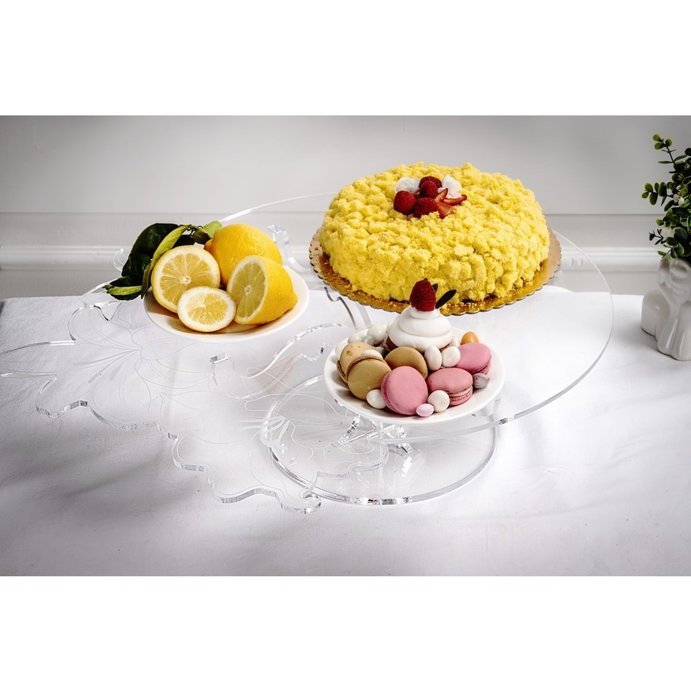 iPLEX Design – Rinascimento Alzata Bassa in plexiglass 61x61x17,5h cm – Una proposta unica e curata nei dettagli, pensata per sorprendere e valorizzare ogni occasione speciale con stile ed emozione.