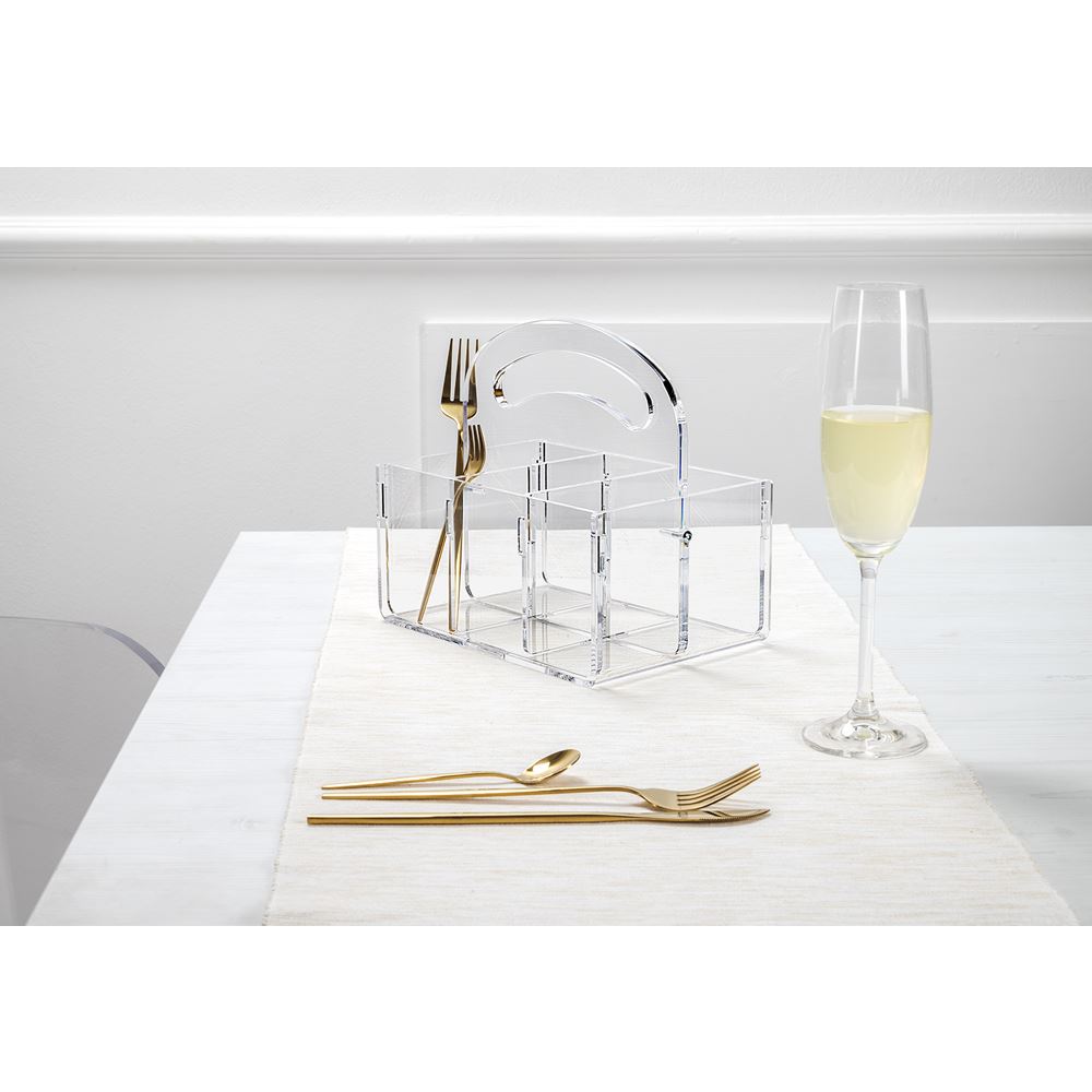 iPLEX Design – Serving P/Posate 6 Sedi Con Manico Trasparente in plexiglass 28,5x21x13h cm – Una proposta unica e curata nei dettagli, pensata per sorprendere e valorizzare ogni occasione speciale con stile ed emozione.
