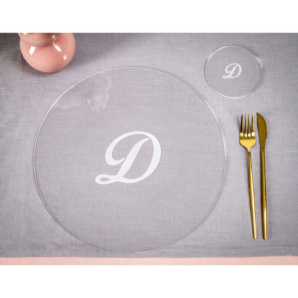 iPLEX Design – Serving Set Sottobicchiere / Sottopiatto Rotondo “D” Trasp. in plexiglass 33x33x0,6h cm – Una proposta unica e curata nei dettagli, pensata per sorprendere e valorizzare ogni occasione speciale con stile ed emozione.