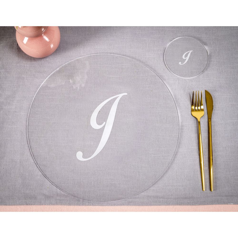 iPLEX Design – Serving Set Sottobicchiere / Sottopiatto Rotondo “J” Trasp. in plexiglass 33x33x0,6h cm – Una proposta unica e curata nei dettagli, pensata per sorprendere e valorizzare ogni occasione speciale con stile ed emozione.