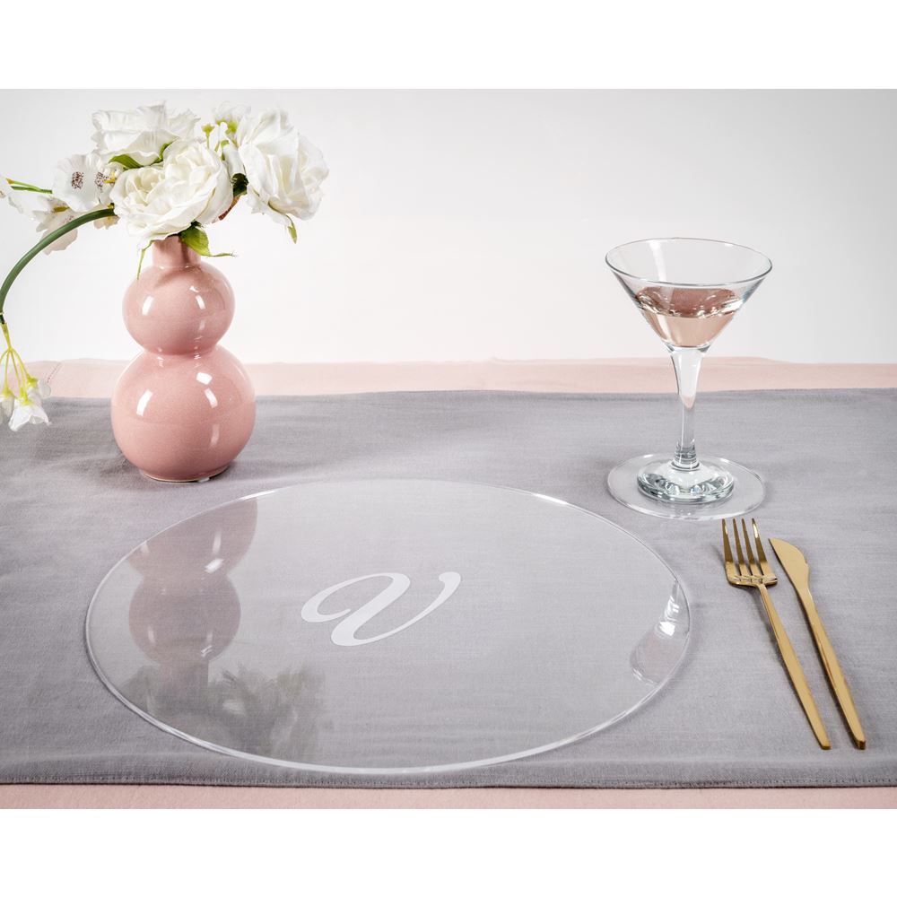 iPLEX Design – Serving Set Sottobicchiere / Sottopiatto Rotondo “V” Trasp. in plexiglass 33x33x0,6h cm – Una proposta unica e curata nei dettagli, pensata per sorprendere e valorizzare ogni occasione speciale con stile ed emozione.