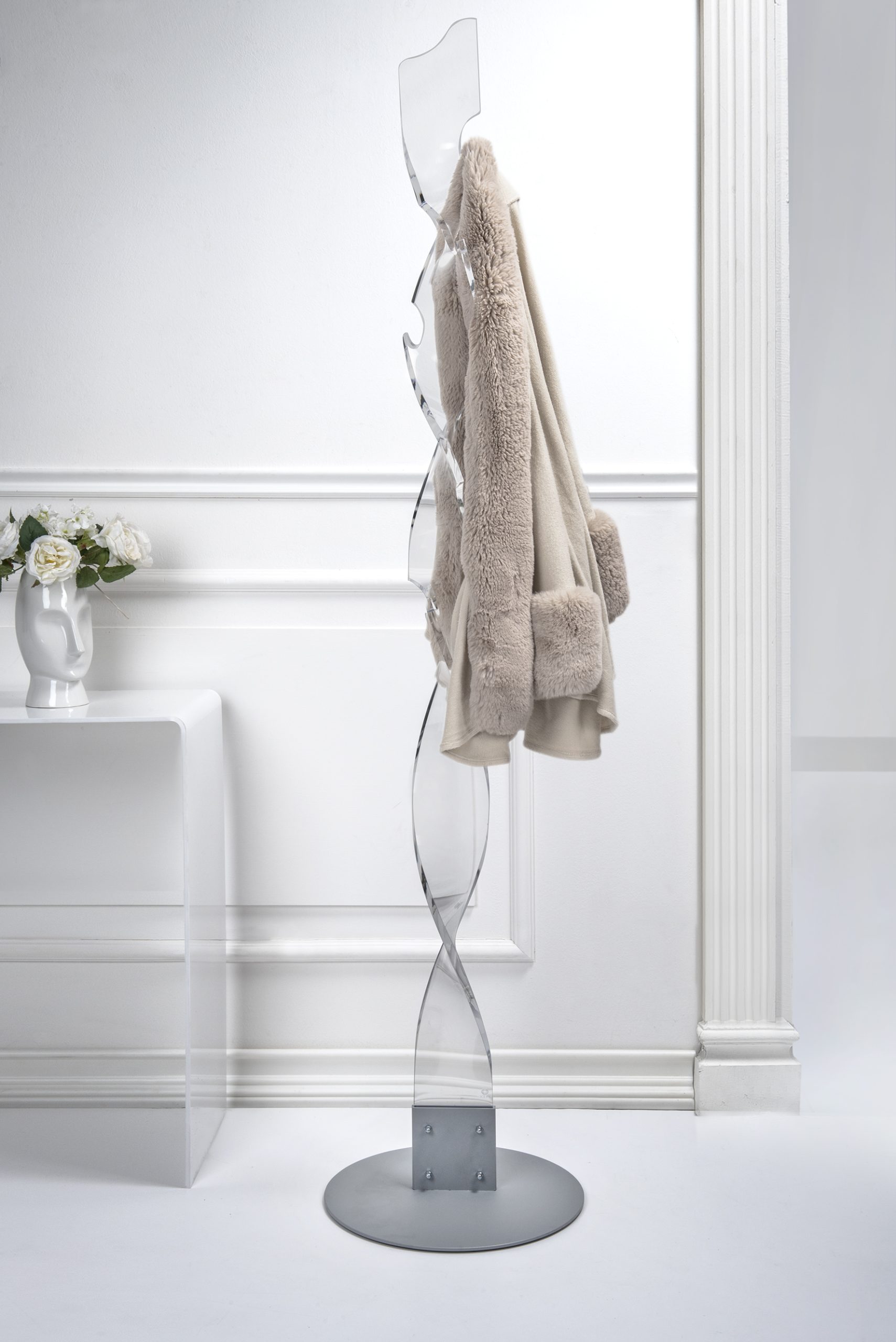 Una vera e propia scultura di luce: è l’appendiabiti Waterfall, realizzato da un unico pezzo di puro cristallo acrilico PMMA dall’importante spessore, tagliato al laser e termoformato a mano. La luminosità e la brillantezza si mantengono costanti ed inalterati nel tempo. Il plexiglass PMMA da polimero vergine utilizzato da Iplex Design è atossico, ipoallergico, inodore ed antibatterico. Riciclabile 100%. Design: Iplex Team. Pensato, progettato e realizzato in Italia, con materiali italiani.