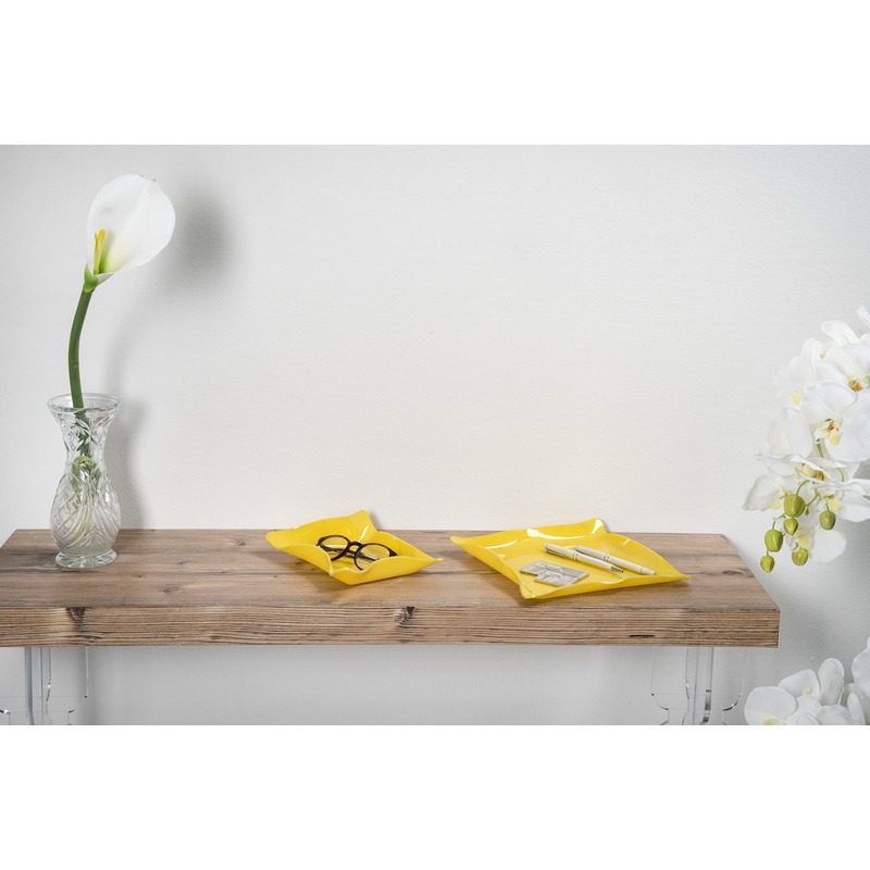 Iplex – Drappeggi d’autore Vassoio quadrato vuotatasche giallo in plexiglass drappeggiato a mano, dim. 23x23x3cm