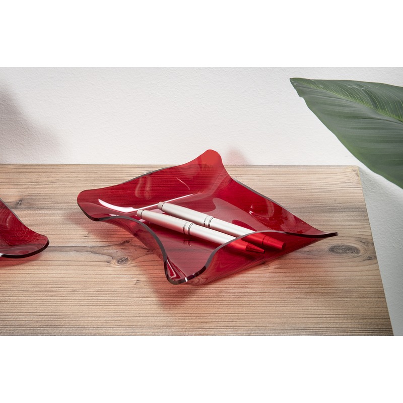 Iplex – Drappeggi d’autore Vassoio quadrato vuotatasche rosso trasparente in plexiglass drappeggiato a mano, dim. 23x23x3cm