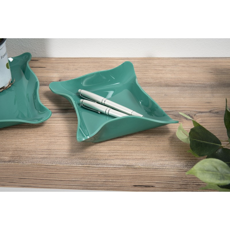 Iplex – Drappeggi d’autore Vassoio quadrato vuotatasche verde scuro in plexiglass drappeggiato a mano, dim. 23x23x3cm
