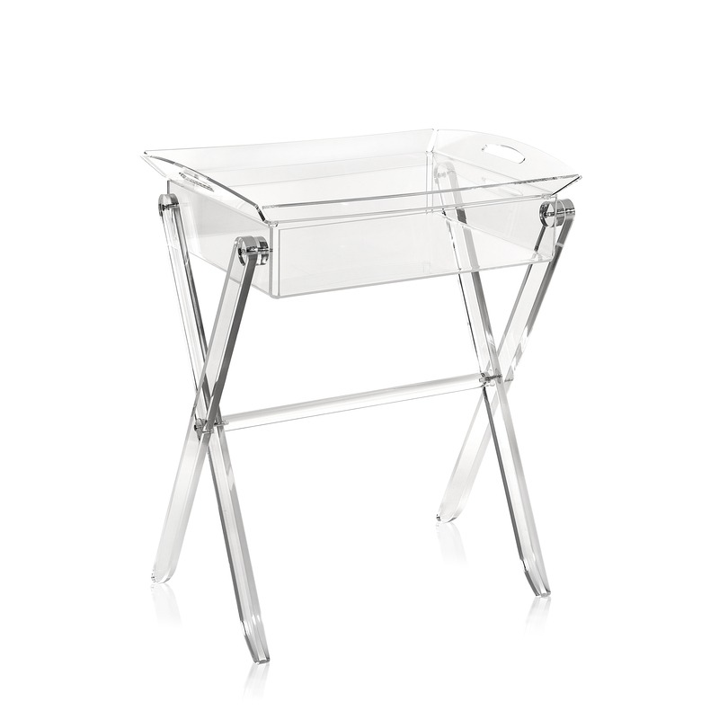 iPLEX – Gaston Tavolino Portavivande in plexiglass PMMA trasparente con doppio ripiano dim. 47x36x59 cm Made in Italy
