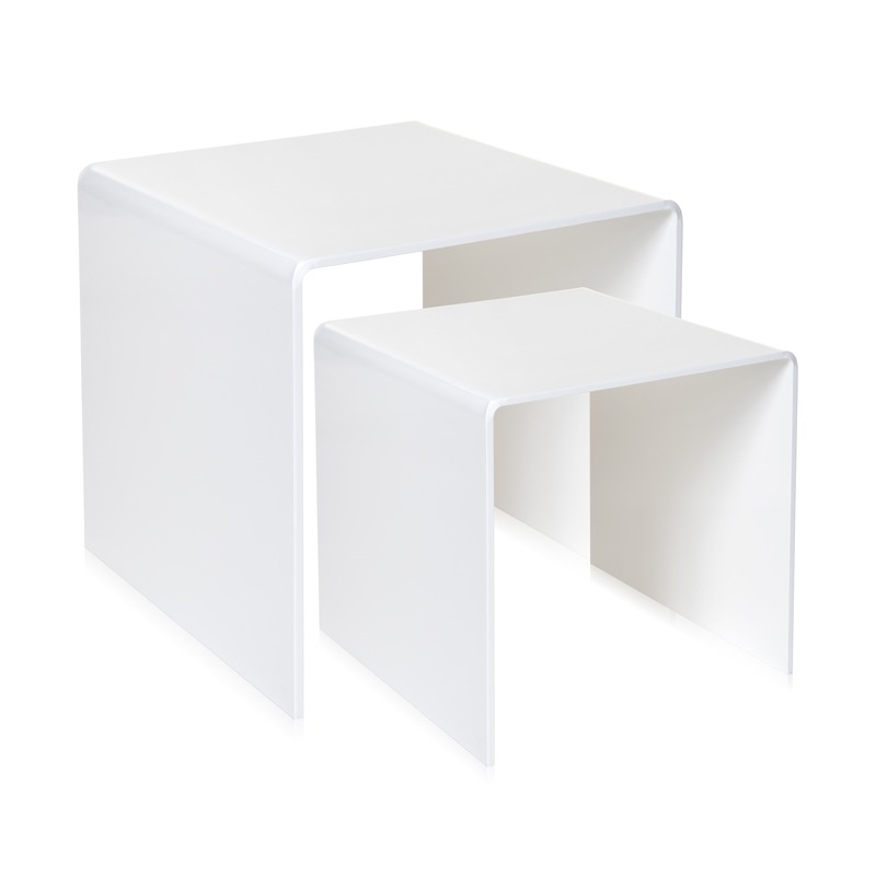 iPLEX – Set di 2 tavolini sovrapponibili design anni ’80 in plexiglass PMMA color bianco pieno – arredamento casa ufficio di lavoro studio tecnico – Una proposta unica e curata nei dettagli, pensata per sorprendere e valorizzare ogni occasione speciale con stile ed emozione.