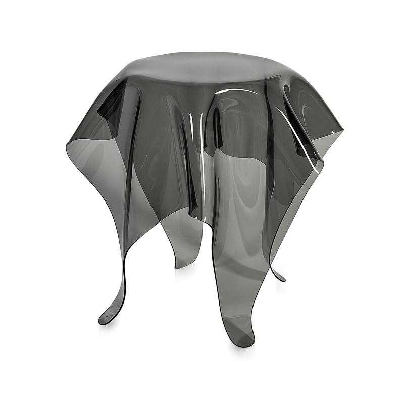 iPLEX – Tavolino alto linea Drappeggi in plexiglass PMMA color fumè trasparente drappeggiato a mano dim. 73x67x66 cm