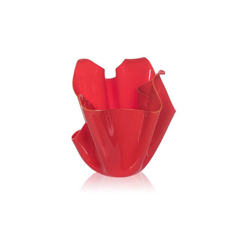 Ogni vaso “Drappeggi d’autore” è un pezzo unico, un’opera d’arte moderna. Una lastra in purissimo polimero vergine 100% di plexiglass PMMA colore pieno viene drappeggiata a mano, sino a creare un vaso unico, irripetibile. Il vaso può essere utilizzato come elegante fioriera o come portabottiglia. Le caratteristiche fisico-tecniche del plexiglass (antiurto, indeformabile, inalterabile, termoisolante) rendono il vaso adatto sia in casa che outdoor. La luminosità e la brillantezza si mantengono costanti ed inalterati nel tempo. Il plexiglass PMMA da polimero vergine utilizzato da Iplex Design è atossico, ipoallergico, inodore ed antibatterico. Riciclabile 100%. Design: Iplex Team. Pensato, progettato e realizzato in Italia, con materiali italiani.