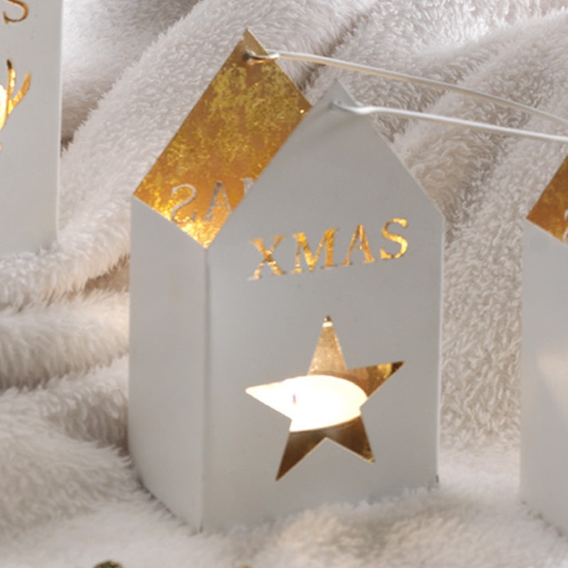 Lanternina in metallo con intagli a forma di stella, esterno colore bianco, interno rivestito in foglia oro.