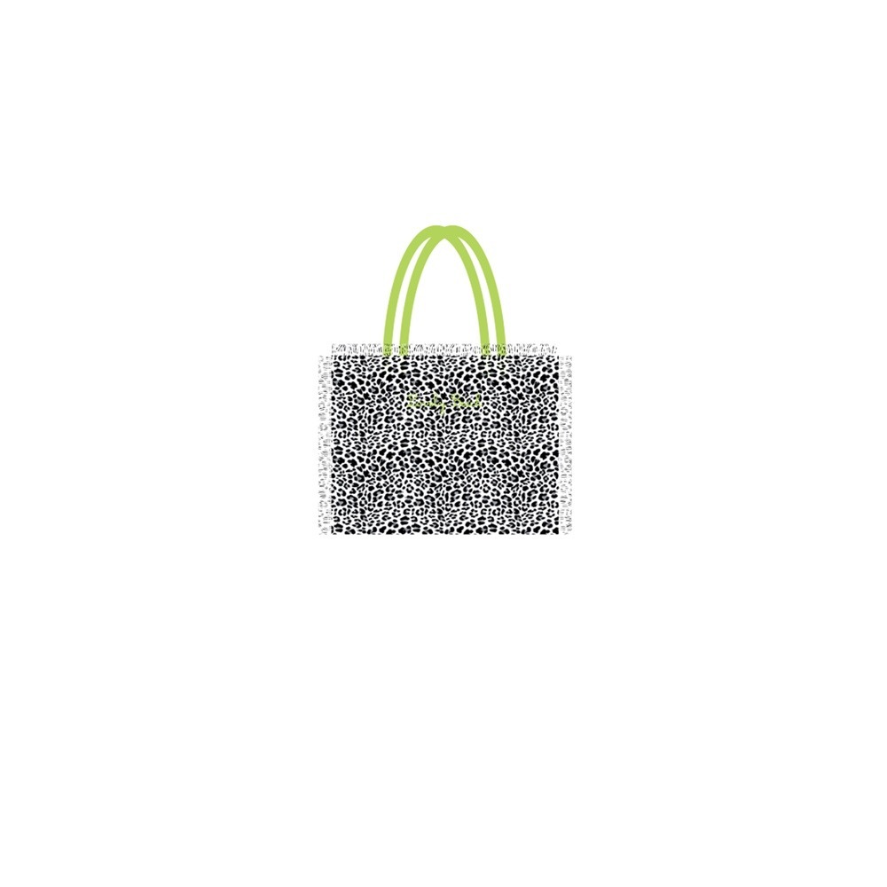 Leopard – Borsa mare bianco/nero dettagli verde mela 48x38x16 cm
