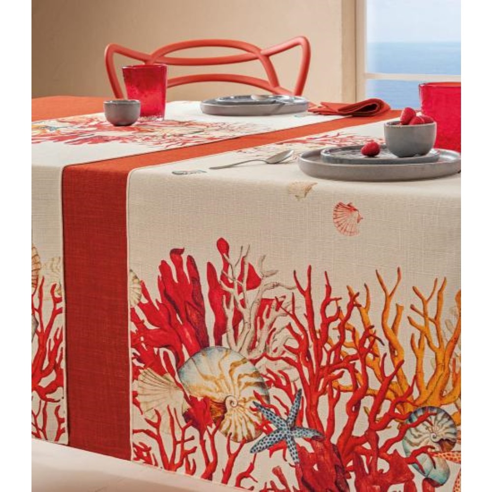 Tablecloths in stain-resistant and waterproof yarn: soft, nice to the touch, 100% made in Italy, to furnish interiors with style and functionality. With exclusive decorations, they are available for 4, 6, 8, 10 or 12 places or as 2-place runners and they can be combined with napkins of plain linen and cotton.