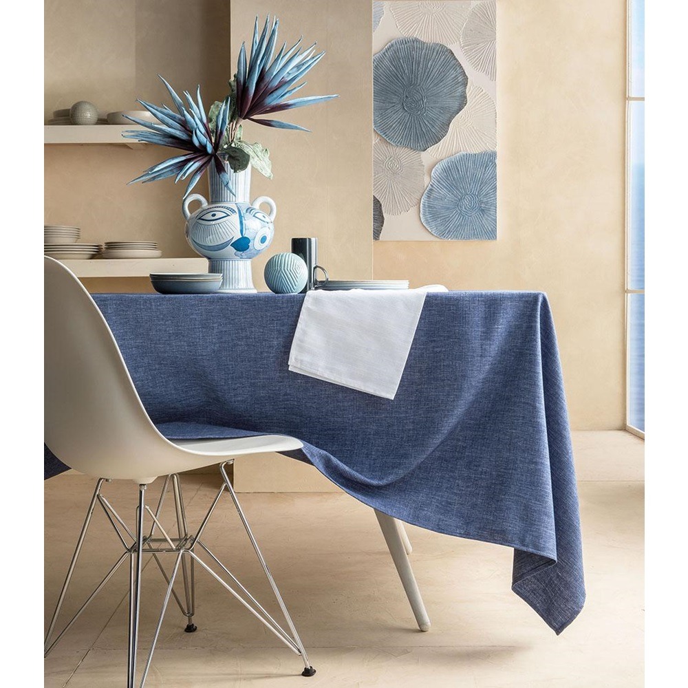 Tablecloths in stain-resistant and waterproof yarn: soft, nice to the touch, 100% made in Italy, to furnish interiors with style and functionality, they are available for 4, 6, 8, 10 or 12 places and they can be combined with napkins of plain linen and cotton.