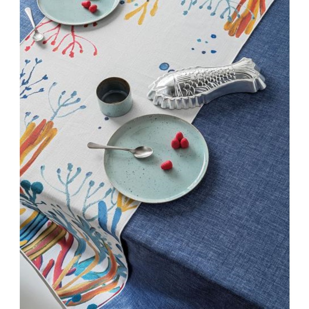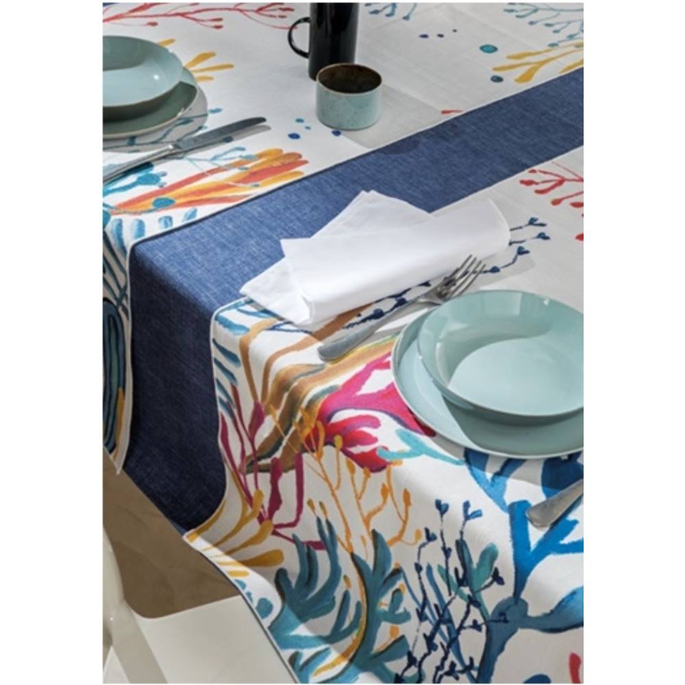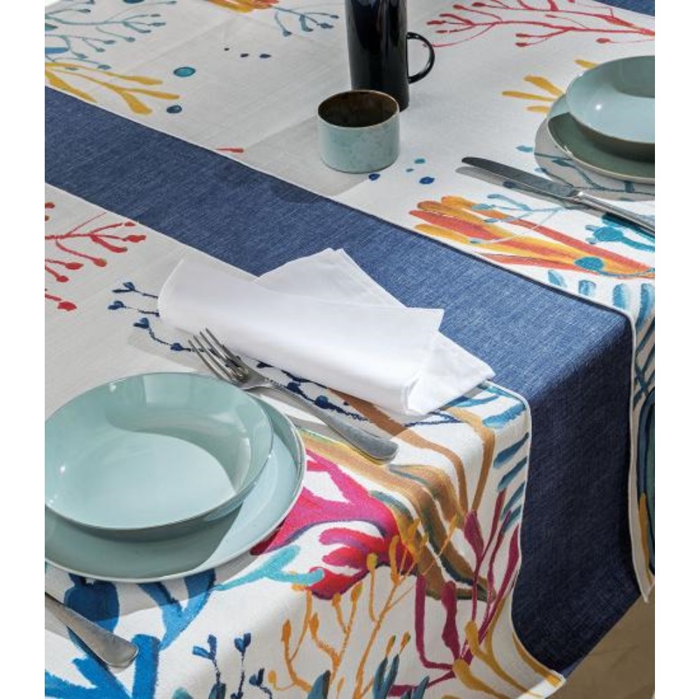 Tablecloths in stain-resistant and waterproof yarn: soft, nice to the touch, 100% made in Italy, to furnish interiors with style and functionality. With exclusive decorations, they are available for 4, 6, 8, 10 or 12 places or as 2-place runners and they can be combined with napkins of plain linen and cotton.