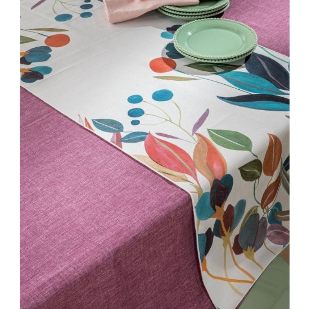 Tablecloths in stain-resistant and waterproof yarn: soft, nice to the touch, 100% made in Italy, to furnish interiors with style and functionality. With exclusive decorations, they are available for 4, 6, 8, 10 or 12 places or as 2-place runners and they can be combined with napkins of plain linen and cotton.