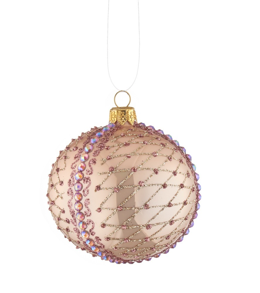 L’Oca Nera – Linea Preziosi Riflessi Rosa ”Palla Decorata Rosa 2” ø8 cm