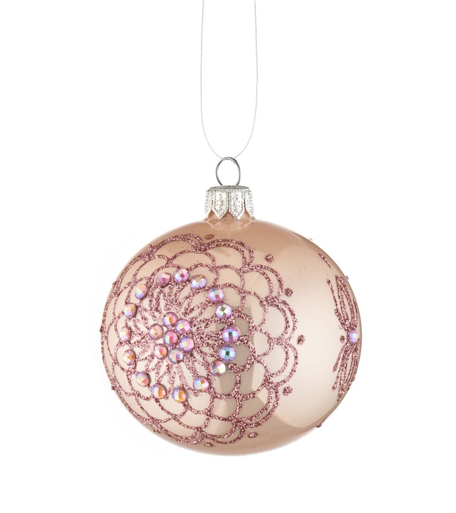 L’Oca Nera – Linea Preziosi Riflessi Rosa ”Palla Decorata Rosa 3” ø8 cm