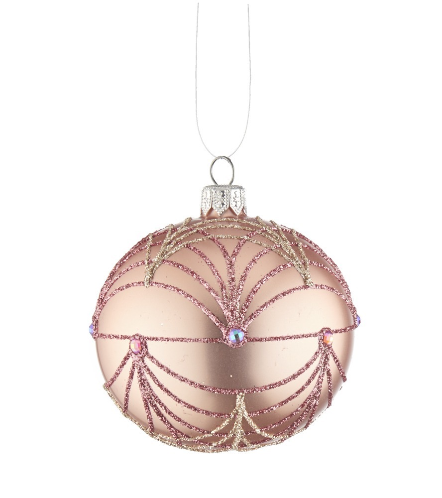 L’Oca Nera – Linea Preziosi Riflessi Rosa ”Palla Decorata Rosa 6” ø8 cm