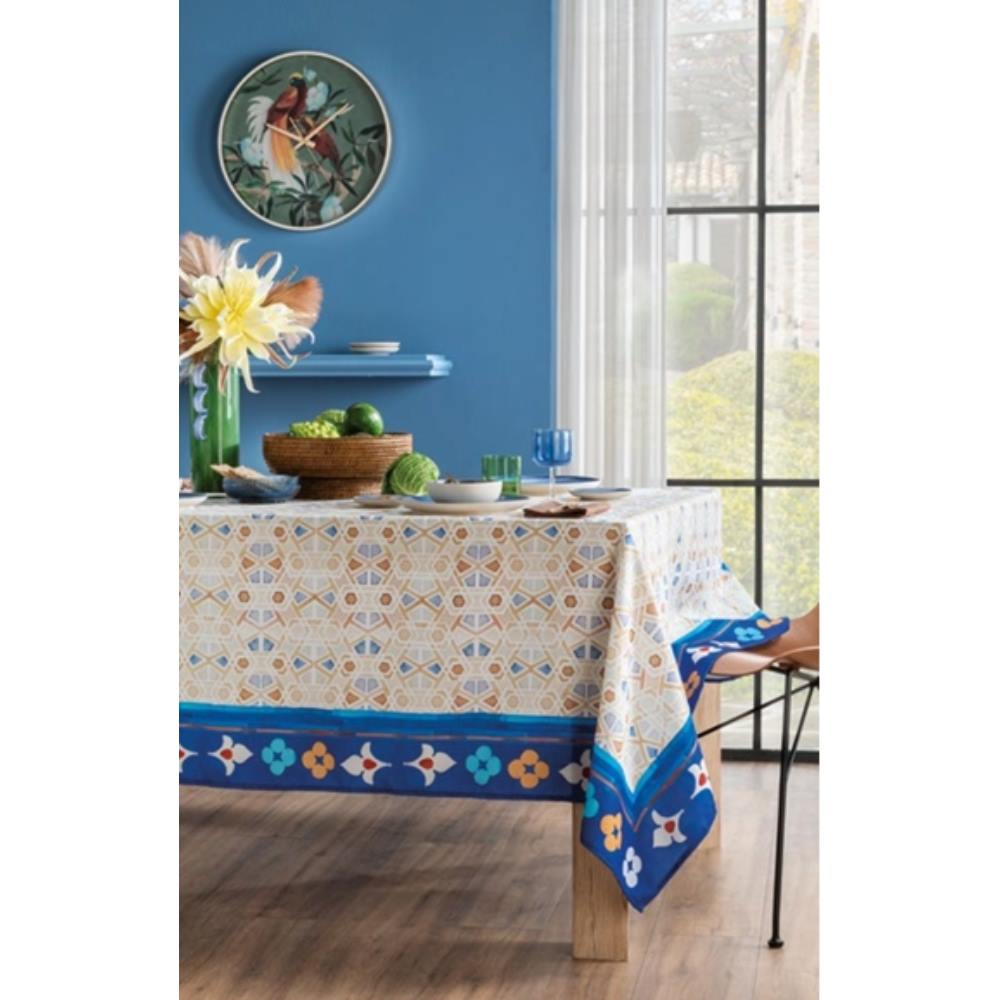 Tablecloths in stain-resistant and waterproof yarn: soft, nice to the touch, 100% made in Italy, to furnish interiors with style and functionality. With exclusive decorations, they are available for 4, 6, 8, 10 or 12 places or as 2-place runners and they can be combined with napkins of plain linen and cotton.
