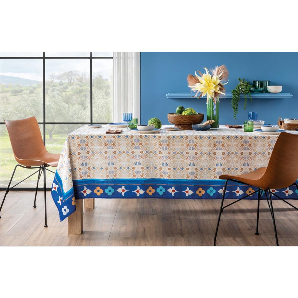 Tablecloths in stain-resistant and waterproof yarn: soft, nice to the touch, 100% made in Italy, to furnish interiors with style and functionality. With exclusive decorations, they are available for 4, 6, 8, 10 or 12 places or as 2-place runners and they can be combined with napkins of plain linen and cotton.