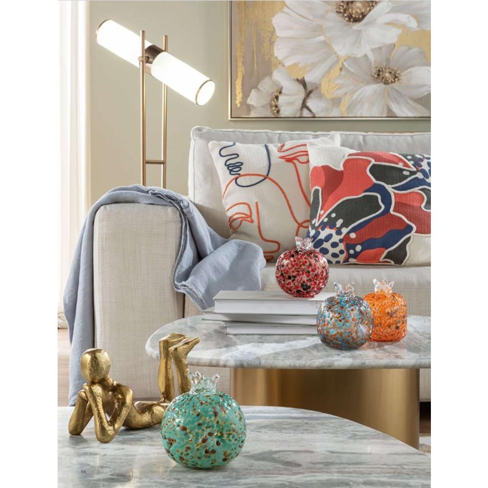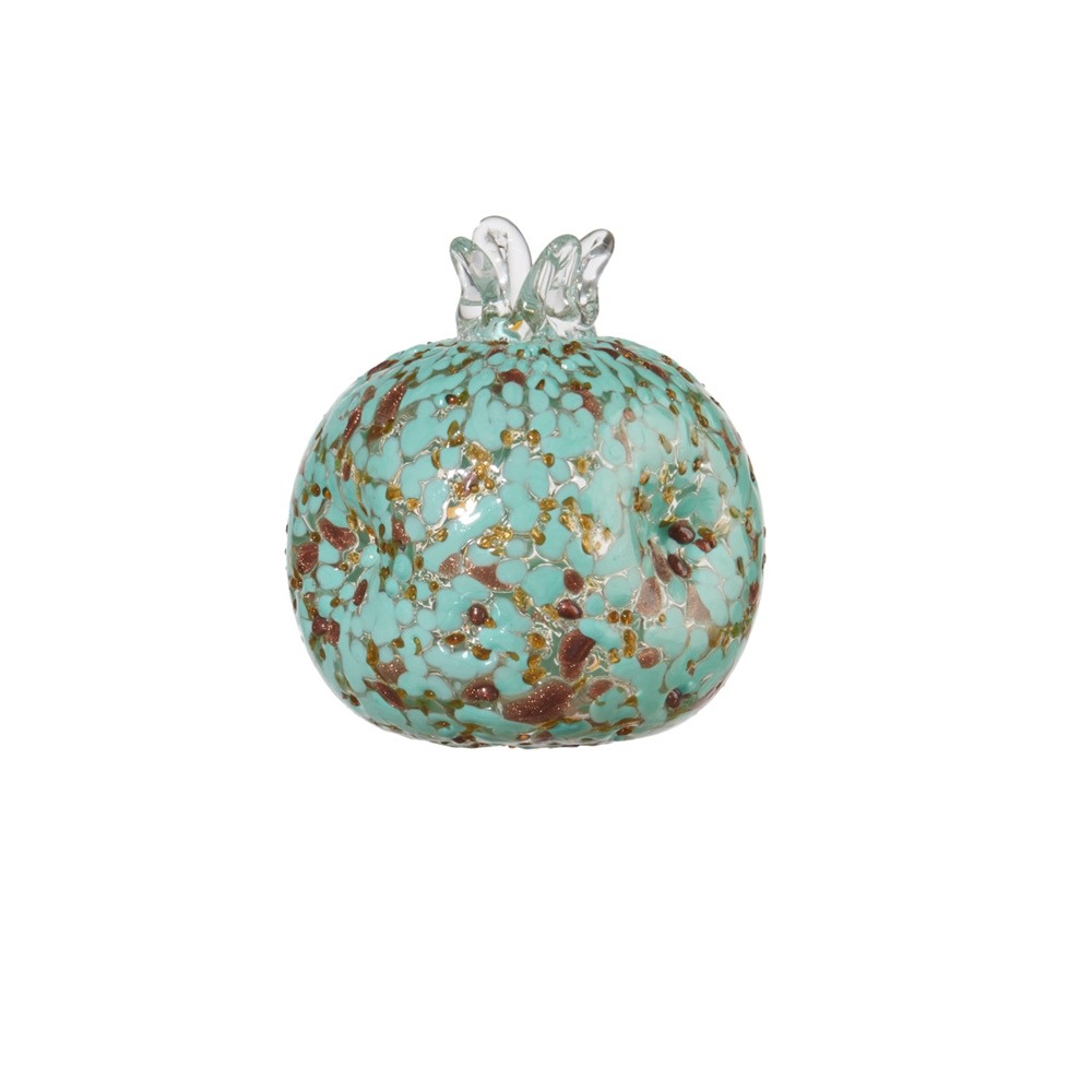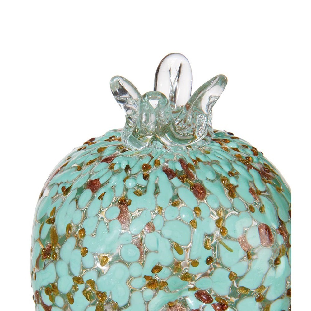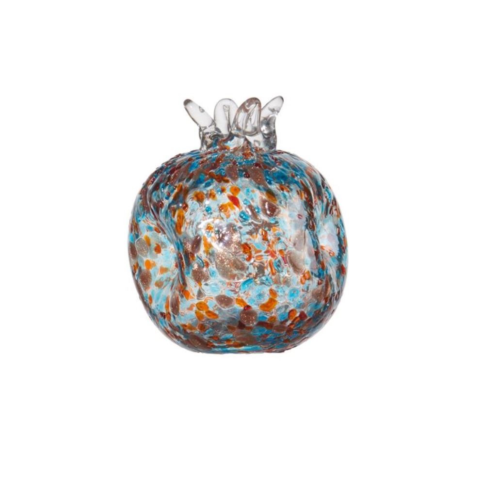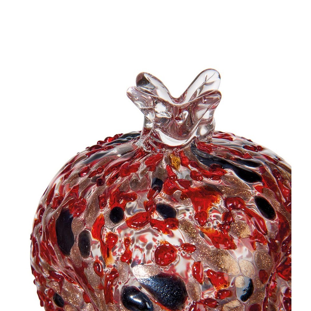 Set composto da 4 melograni decorativi in vetro. Vivace decoro di colori su base trasparente per completare l’arredamento di un ambiente moderno con elementi che che comunicano in modo fluido.