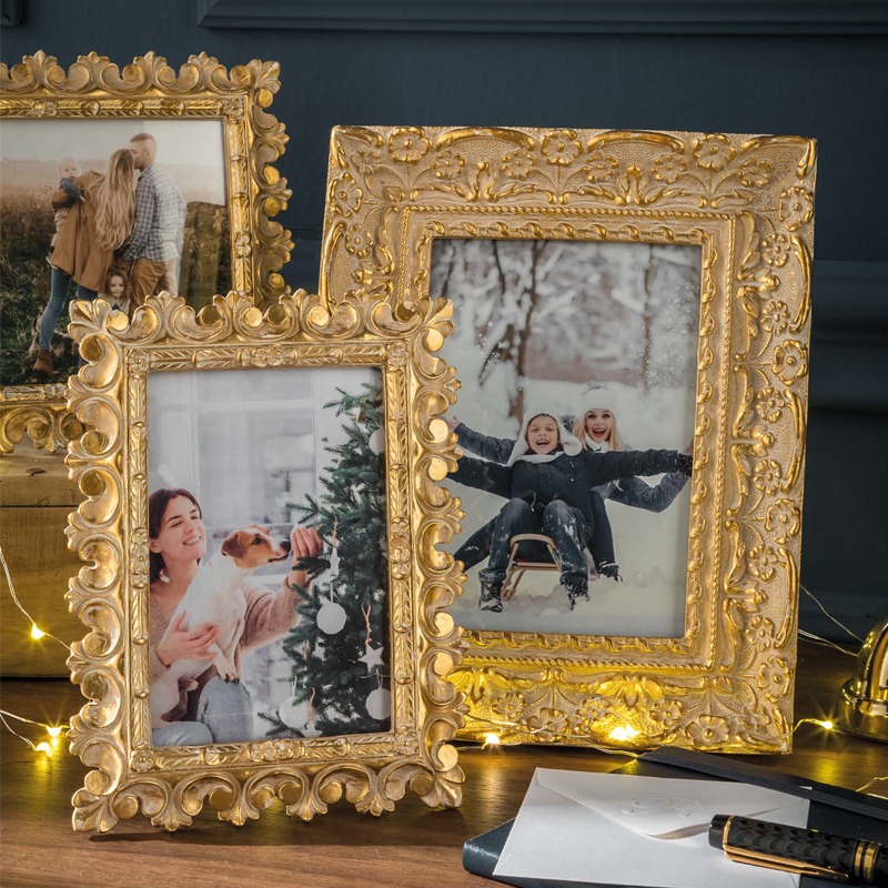 L’Oca Nera – Momenti Perfetti ! Portafoto piccolo dorato con design barocco, dim. 18,5×23,5 cm (dim. foto 10×15)