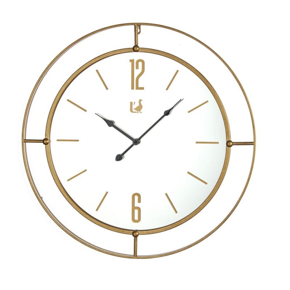 Orologio da parete a specchio in metallo dorato. Per scandire il vostro tempo con eleganza ed impreziosire ambienti dall’atmosfera esclusiva.
